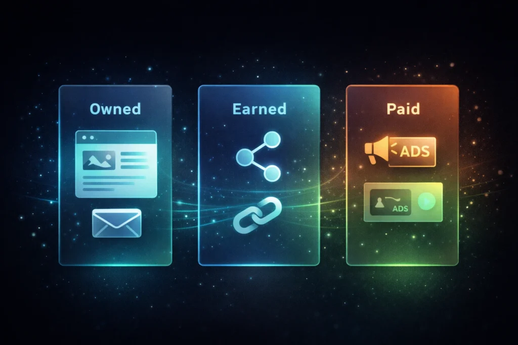 فهم أنواع قنوات التوزيع المختلفة هو مفتاح بناء استراتيجية توزيع ناجحة. هناك ثلاثة أنواع رئيسية من القنوات، كل منها له خصائصه واستراتيجياته المختلفة. إتقان التوازن بينها هو ما يميز صناع المحتوى المحترفين عن الهواة.